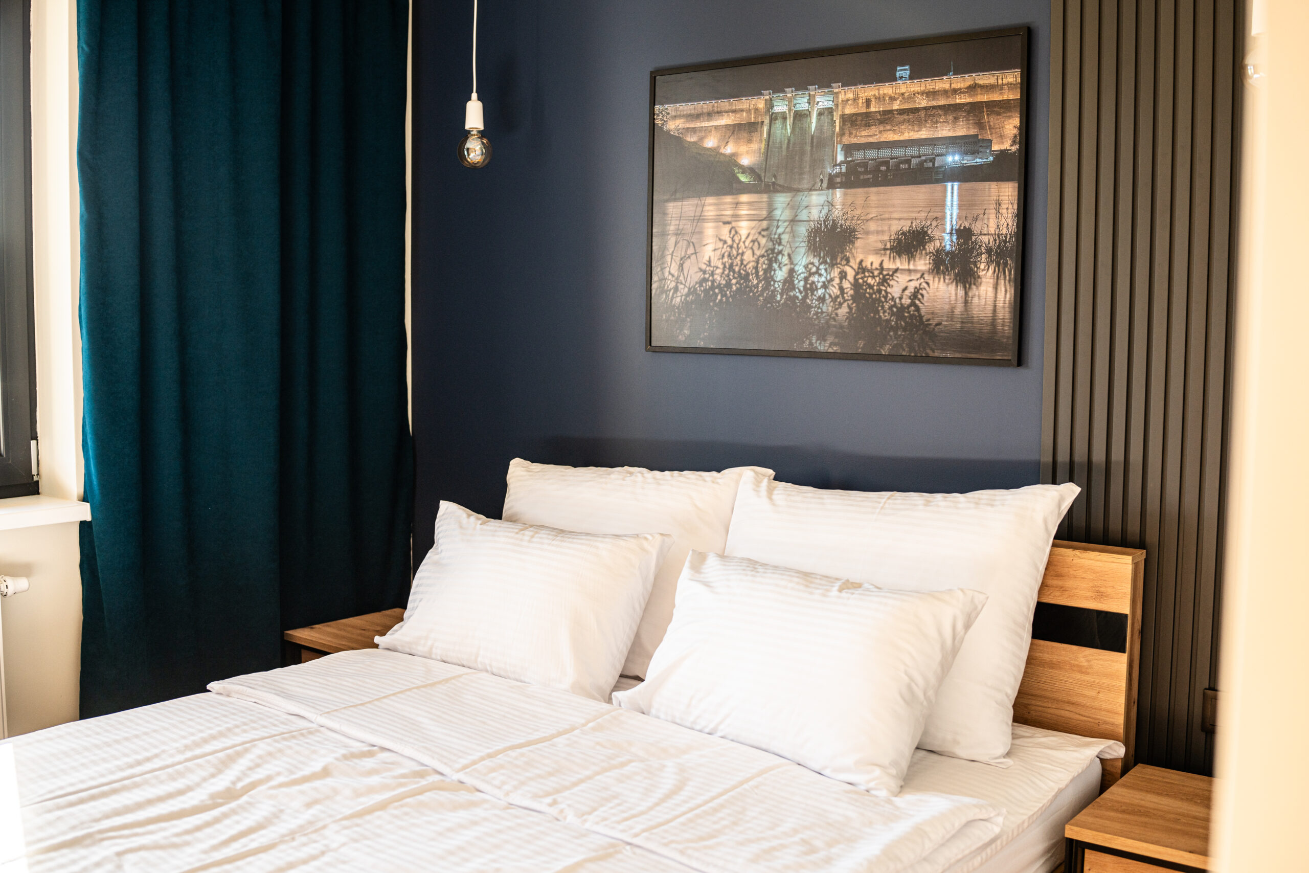 Apartament znajduje się na trzecim piętrze w budynku wyposażonym w windę. W sypialni przygotowano duże, wygodne łóżko, natomiast w salonie znajduje się rozkładana sofa z dodatkowym miejscem do spania. Kuchnia została wyposażona w niezbędny sprzęt AGD.