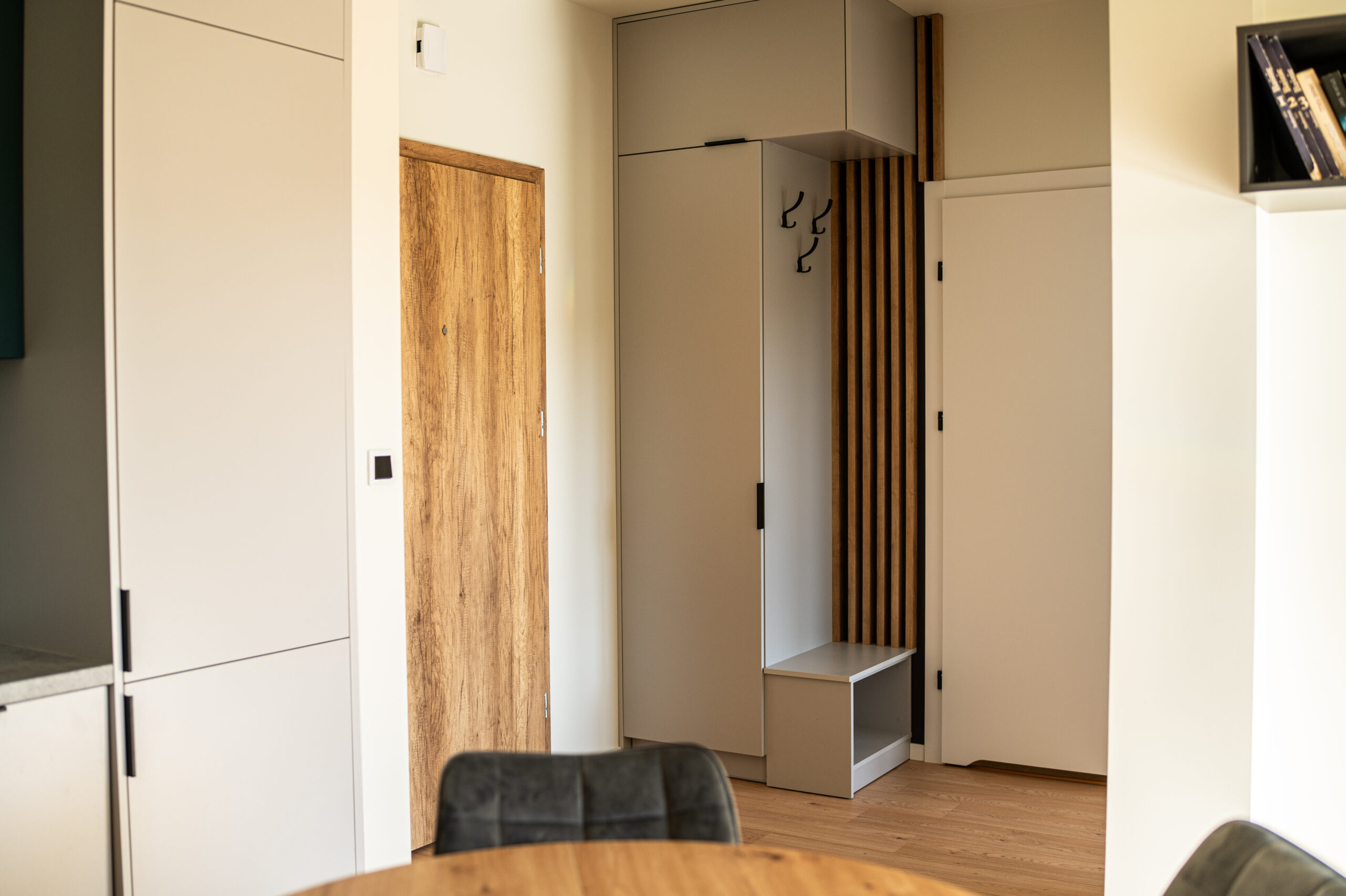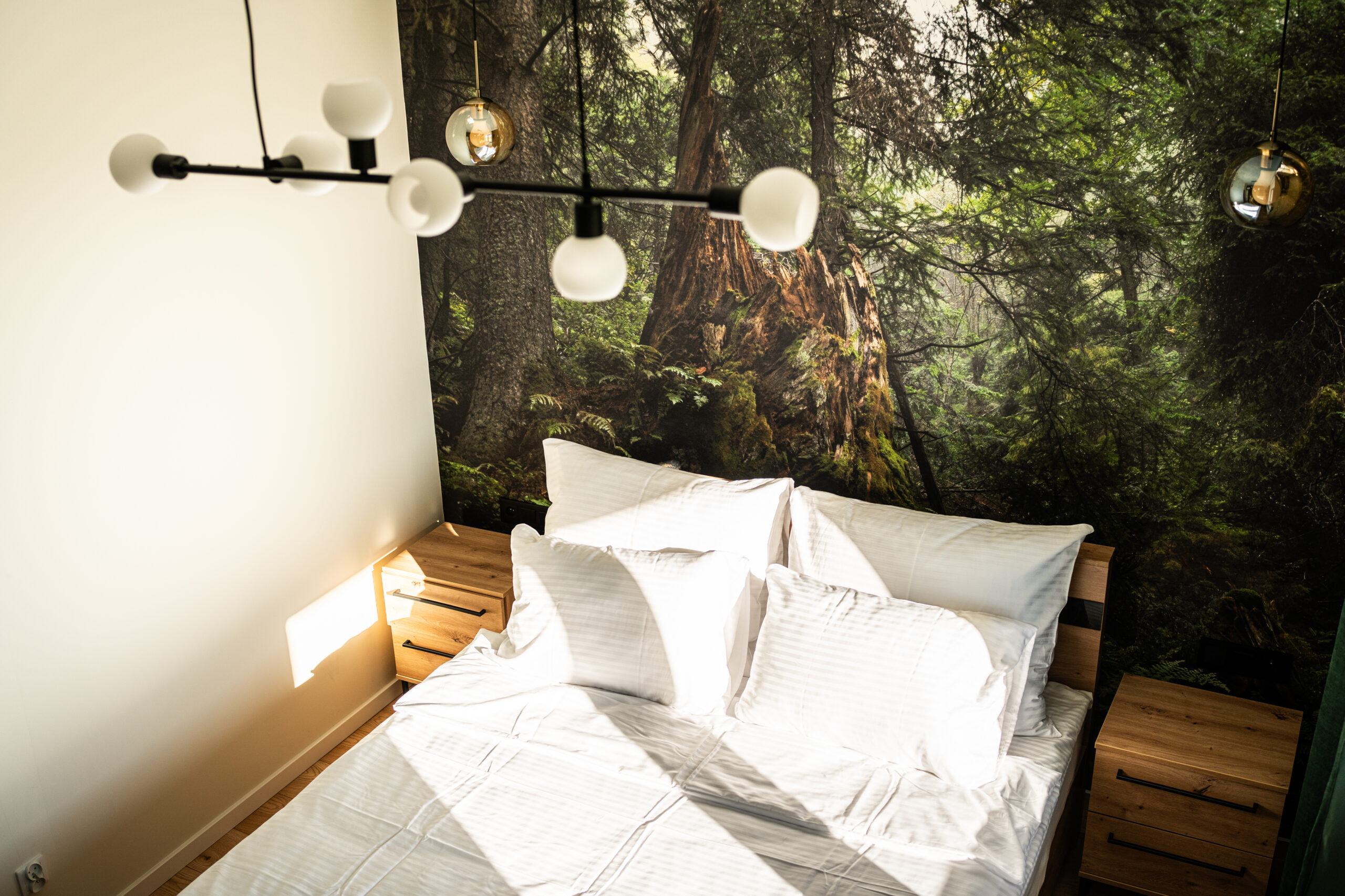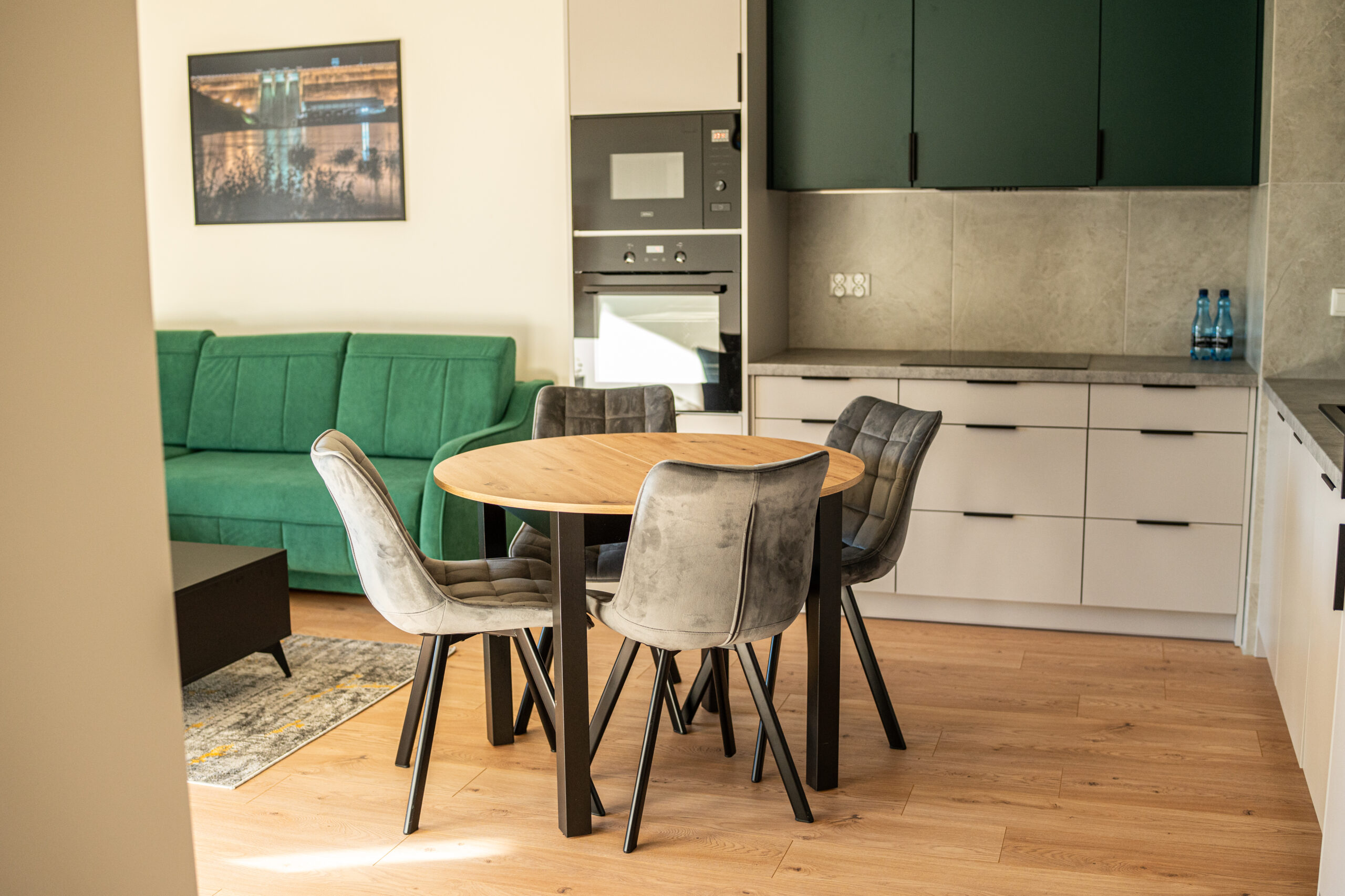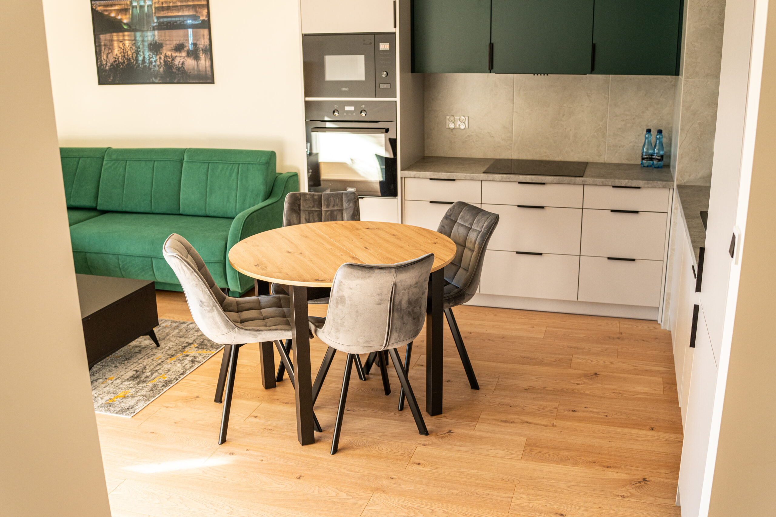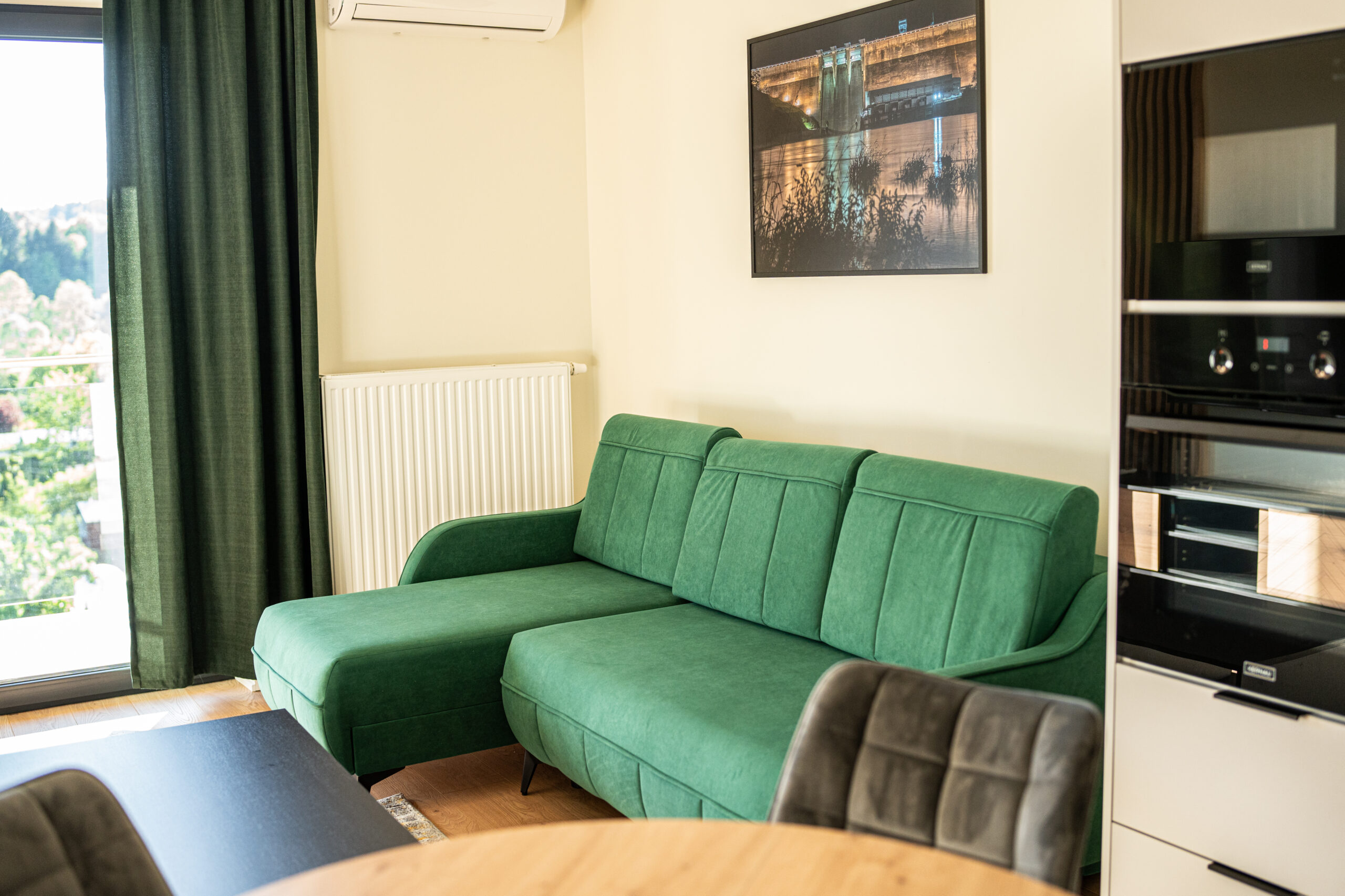 Apartament położony jest na trzecim piętrze w budynku wyposażonym w windę. Mieszkanie składa się z salonu połączonego z bogato wyposażonym aneksem kuchennym oraz oddzielnej sypialni, w której znajduje się duże podwójne łóżko, szafa oraz biurko. W apartamencie mieści się duża, przestronna łazienka z kabiną prysznicową oraz toaletą. Z okien mieszkania roztacza się widok na rzekę San oraz wzgórza otaczające miasto.